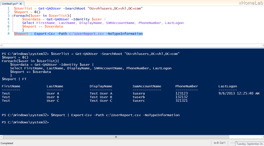 Image Posted by Vaseem Mohammed Posted on 24/09/2013 Posted in Export Active Directory User details to Excel using PowerShell Comments Leave a comment image62.png Size: 1024 × 567 Post a comment or leave a trackback: Trackback URL.