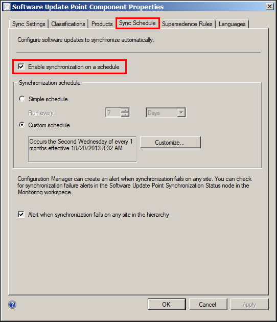 Schedule Sync Software Updates under Sync Schedule tab