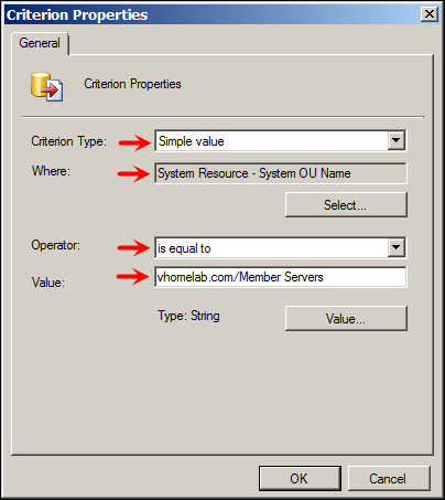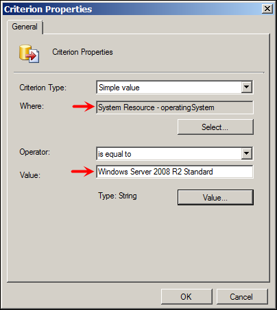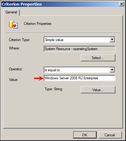 3rd Criteria is again Operating System, but this time value is different (2008 R2 Ent)