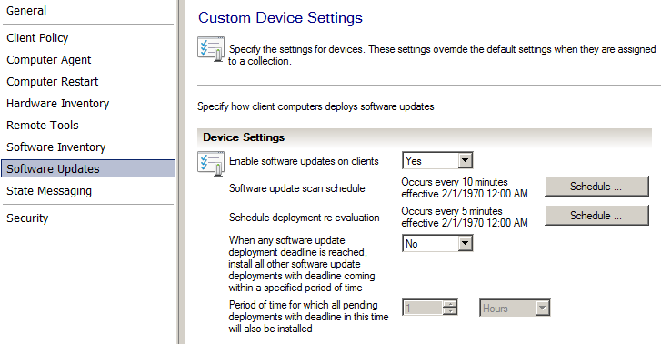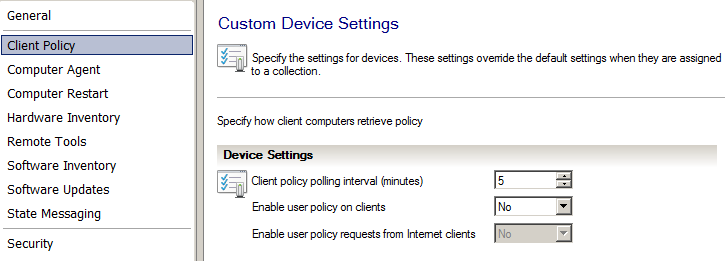 Now we need to setup a custom client settings for in general “Server” device collection