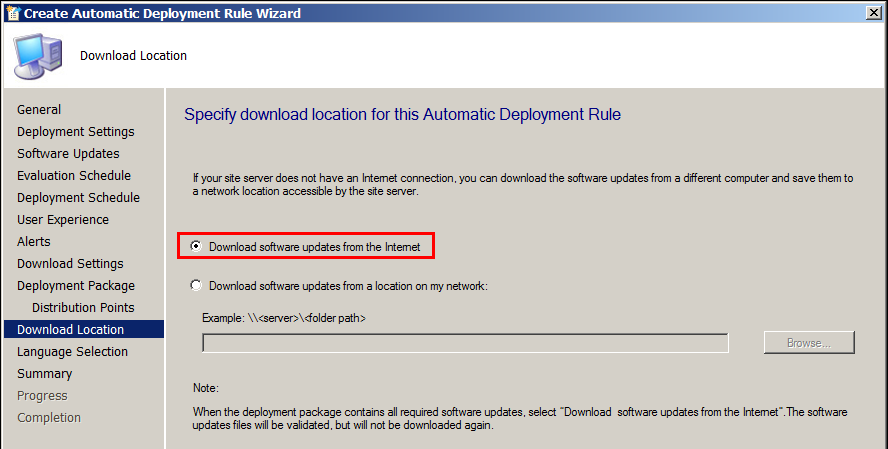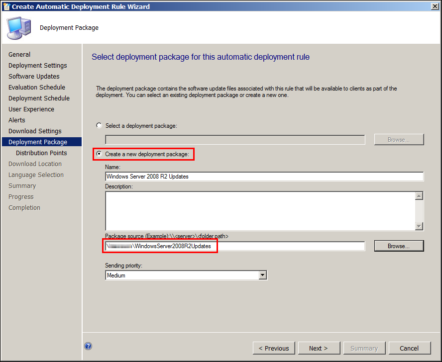 On Deployment Package page, If you already have a Defined Package Location use that, else Create a shared folder on Server.