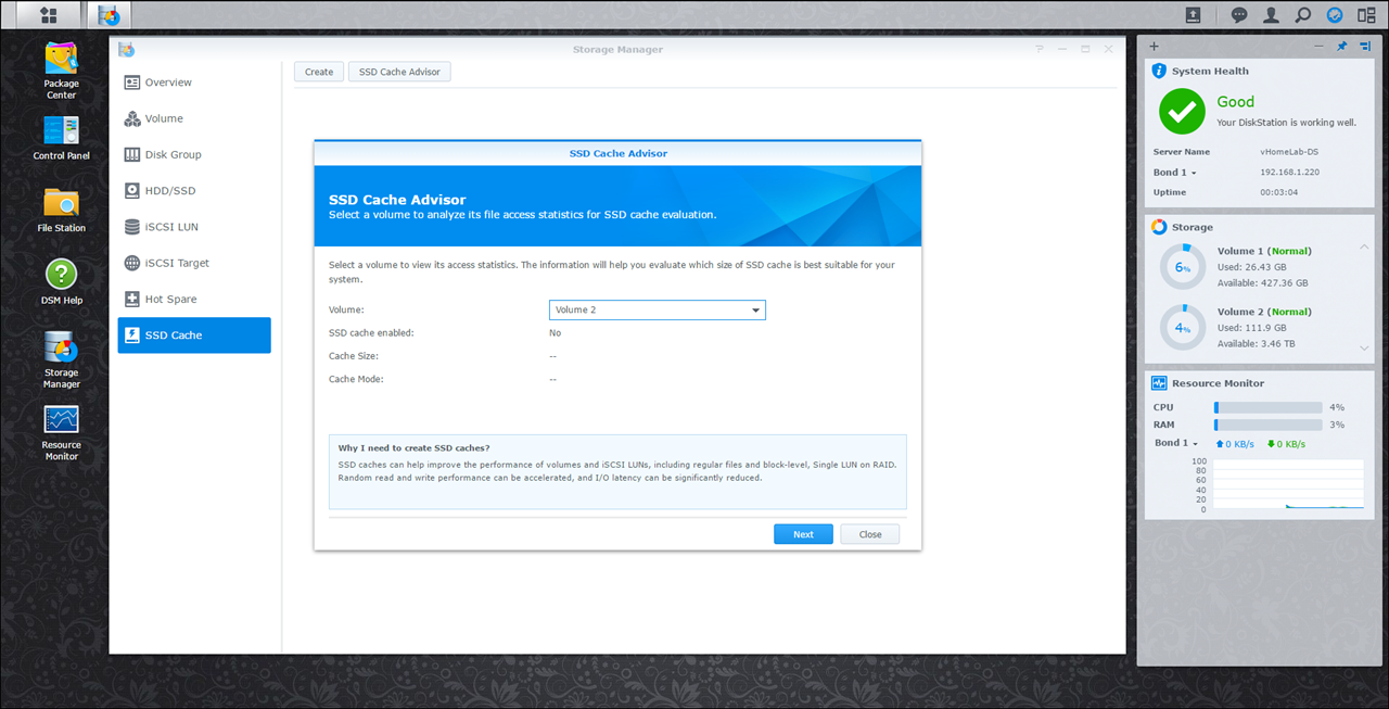 One thing that I noticed when using “SSD Cache Advisor” on Synology that I gives a vague message “The memory on your Synology NAS is full so it is not possible to create SSD cache” Though I have 8GB memory installed.