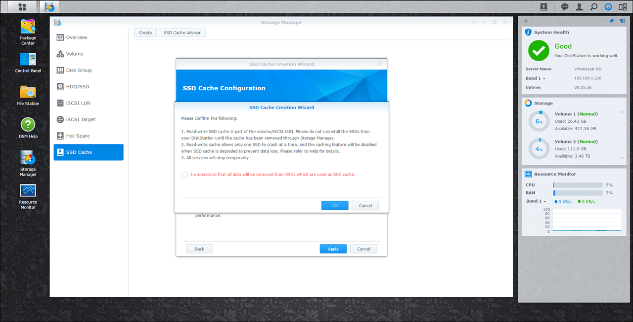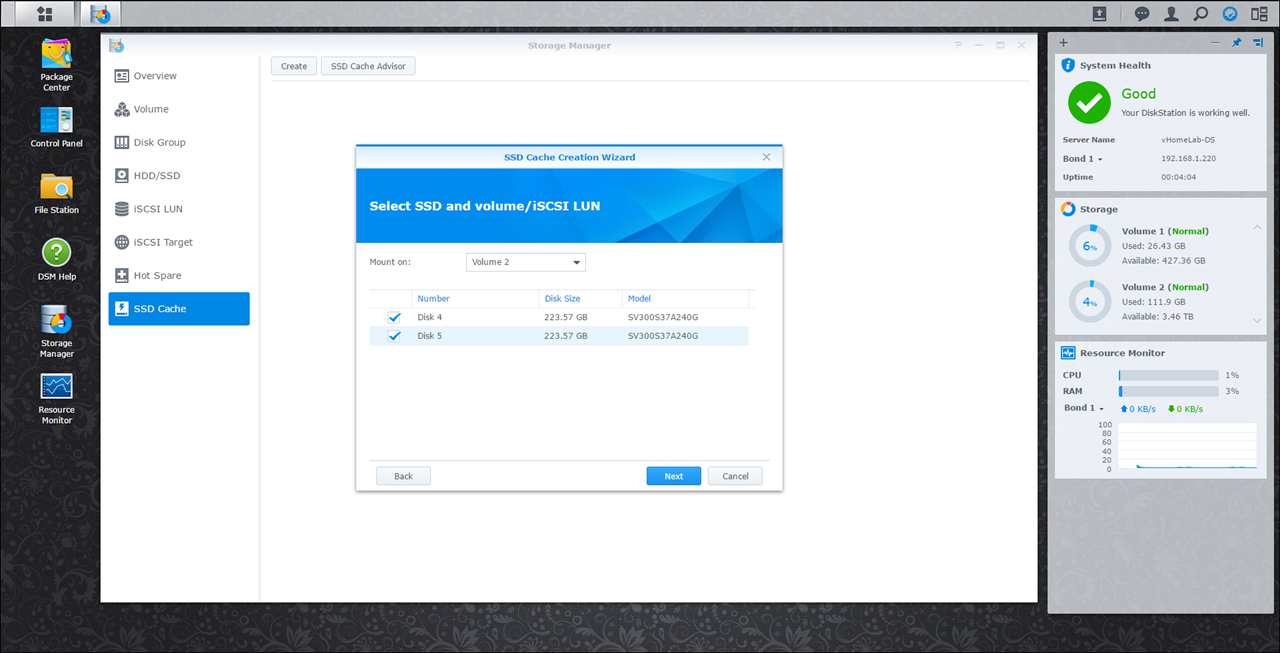 Got 2 x Kingston v300 240GB SSD for R/W cache to speed up my Lab. Though 240GB is not listed on Synology compatibility list, but 120GB v300 is listed here.