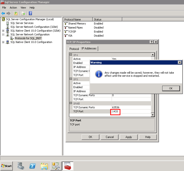 “The TCP/IP connection to the host SQL2K8R2.homelab.com, port 1433 has failed. Error: “connect timed out. Verify the connection properties, check that an instance of SQL Server is running on the host and accepting TCP/IP connections at the port, and that no firewall is blocking TCP connections to the port.”.