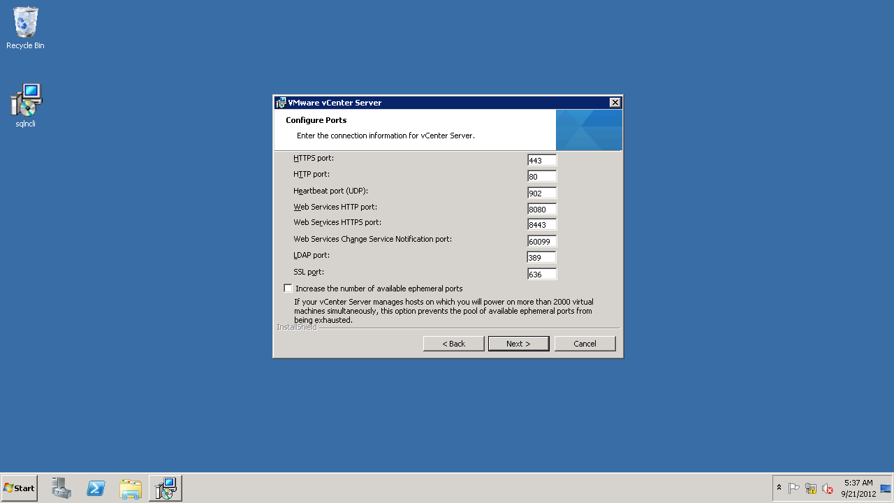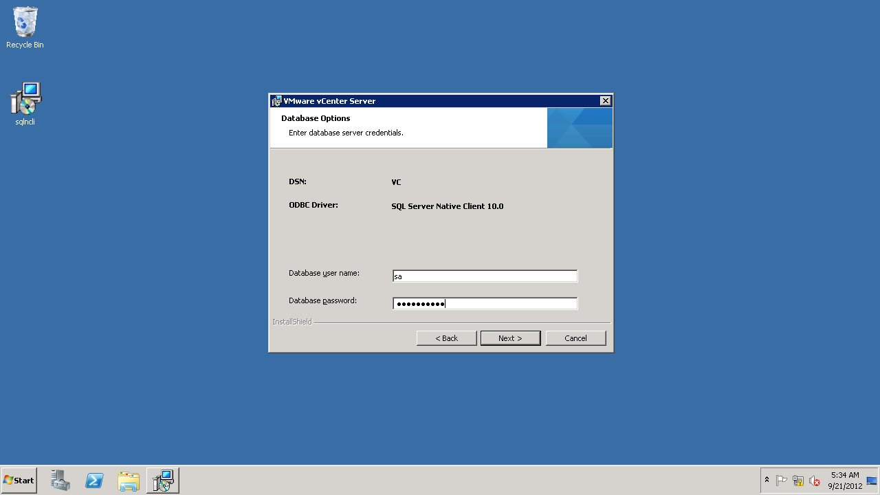 For SSO and vCenter there is a requirement of a SQL server, in this test lab I will be using a separate SQL 2008 R2 server.