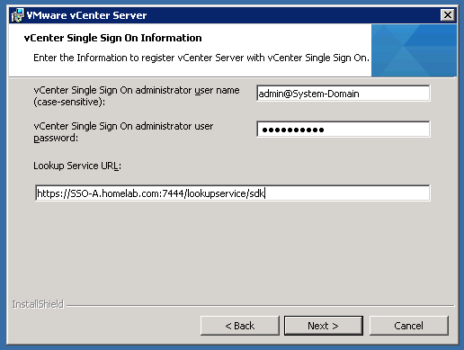 The order is SSO (Single Sign On), Inventory, and last vCenter. All 3 services can be installed on a single server but, I will attempt to install SSO on a separate server whereas Inventory and vCenter on another server.