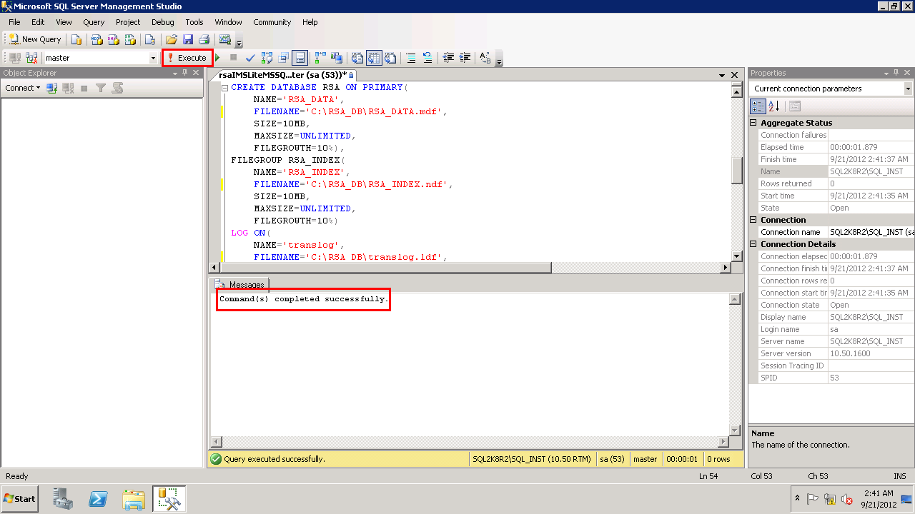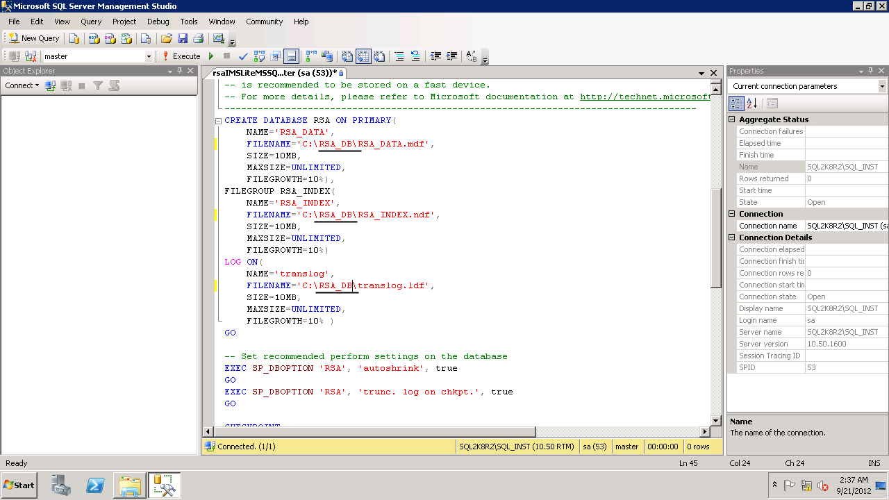 1. create folder for database file. I am using folder name as “RSA_DB” on C-Drive (for lab test purpose)